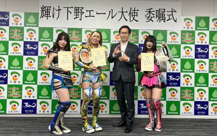 スターダムの羽南選手・吏南選手・妃南選手が栃木県下野市の《輝け下野エール大使》に選出