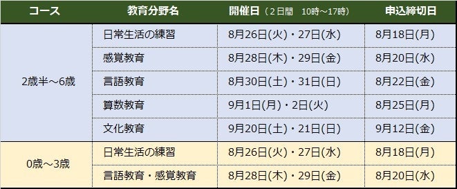 株式会社 学研ホールディングス(東京・品川/代表取締役社長:宮原博昭)のグループ財団である、公益財団法人 才能開発教育研究財団は、傘下の日本モンテッソーリ教育綜合研究所にて、モンテッソーリ教育の基礎理論と教具を使った基本提示について、分野ごとに2日間で学ぶ『集中講座』を、8月26日を皮切りに7講座開講いたします。