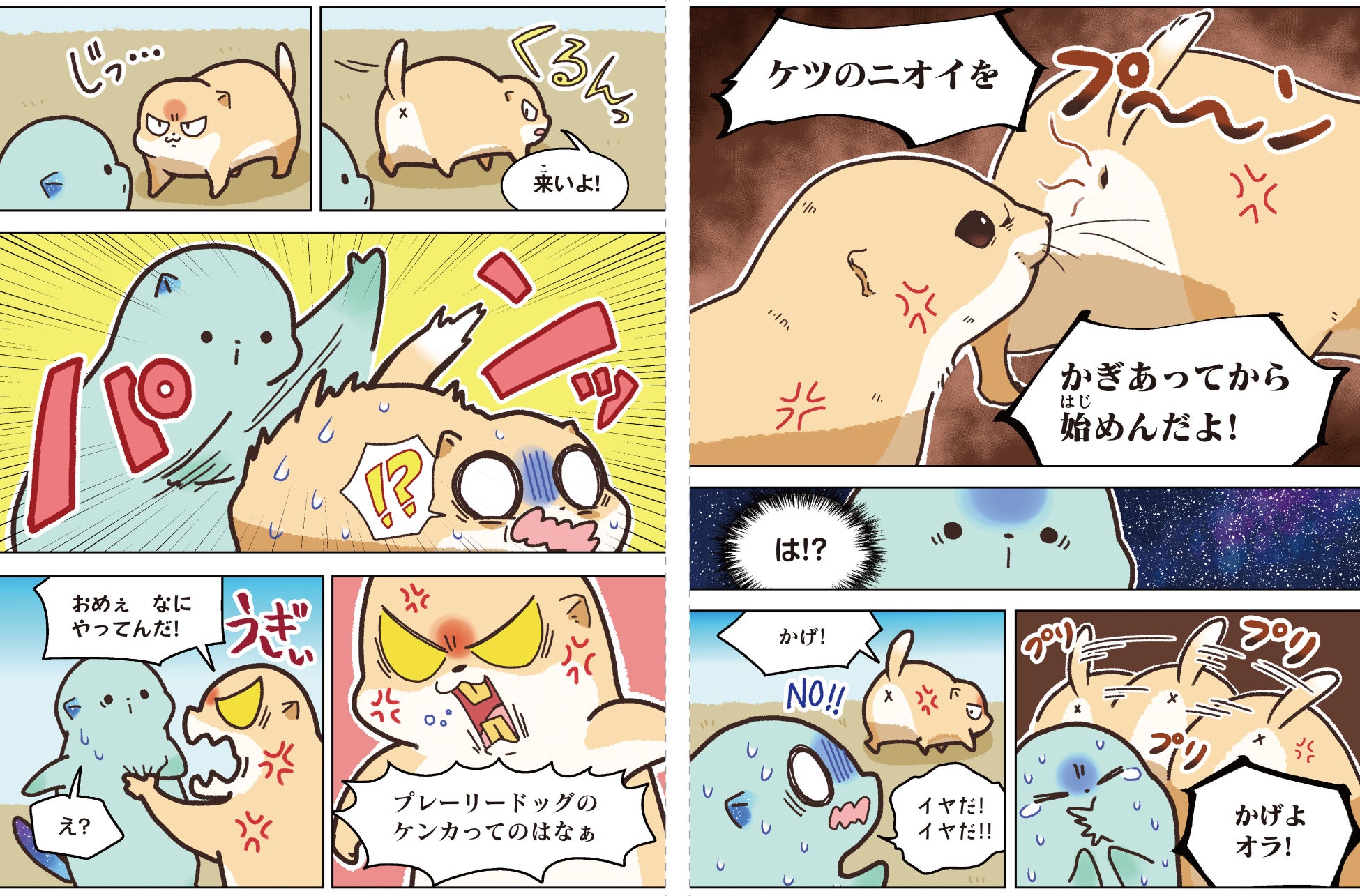 しかし、お尻の穴を嗅ぎ合ってバトルする生きものや、他人の糞で巣を温める鳥など、地球のクセモノたちに振り回されていつも大ピンチに……!