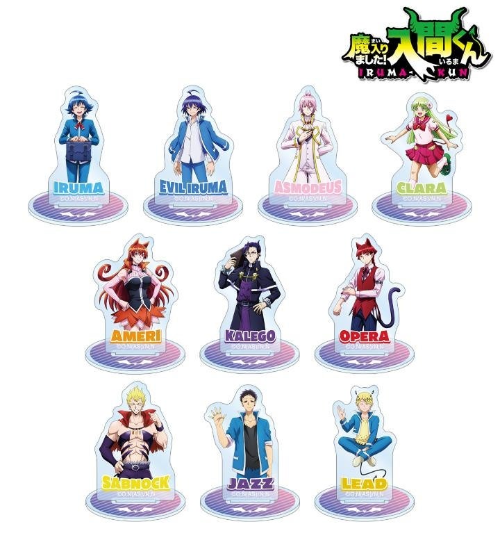 鈴木入間、悪入間、アスモデウス・アリス、ウァラク・クララ、アザゼル・アメリ、ナベリウス・カルエゴ、オペラ、サブノック・サブロ、アンドロ・M・ジャズ、シャックス・リードのイラストをアクリルスタンドに仕上げました。