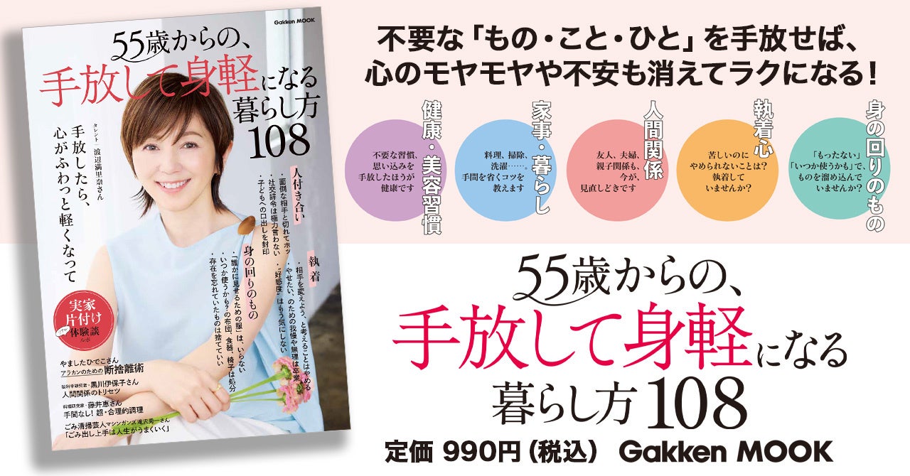 【表紙は渡辺満里奈さん!】大人の女性が自分らしく、楽しく生きるためのムックシリーズ、待望の第4弾『55歳からの、手放して身軽になる暮らし方108』が好評発売中!