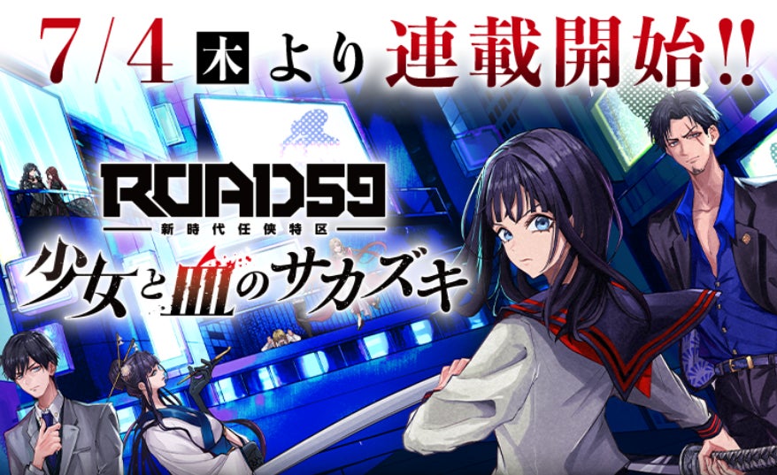 ブシロードが原作の新時代の「任侠物」がテーマのメディアミックスプロジェクト「ROAD59 -新時代任侠特区-」初のコミカライズ連載となる『ROAD59 -新時代任侠特区- 少女と血のサカズキ』が7月4日(木)より講談社が運営する週刊少年マガジン公式漫画アプリ「マガポケ」にて連載開始しました。