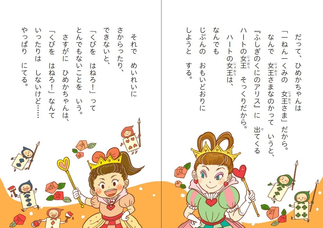 ――つむぎは小学校1年生。同じクラスのひめかちゃんは、わがままで、自由きままで、まるで女王さまみたい。そのせいで、毎日じけんがおこってばかりで大めいわく。だけど、楽しくて、なんだかにくめない!