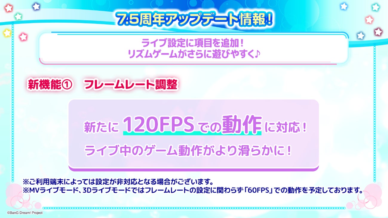 120FPSでの動作に対応するようになり、ライブ中のゲーム動作がより滑らかになります。