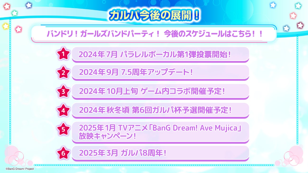 ガルパ8周年へ向けた今後のスケジュールを公開いたしました。