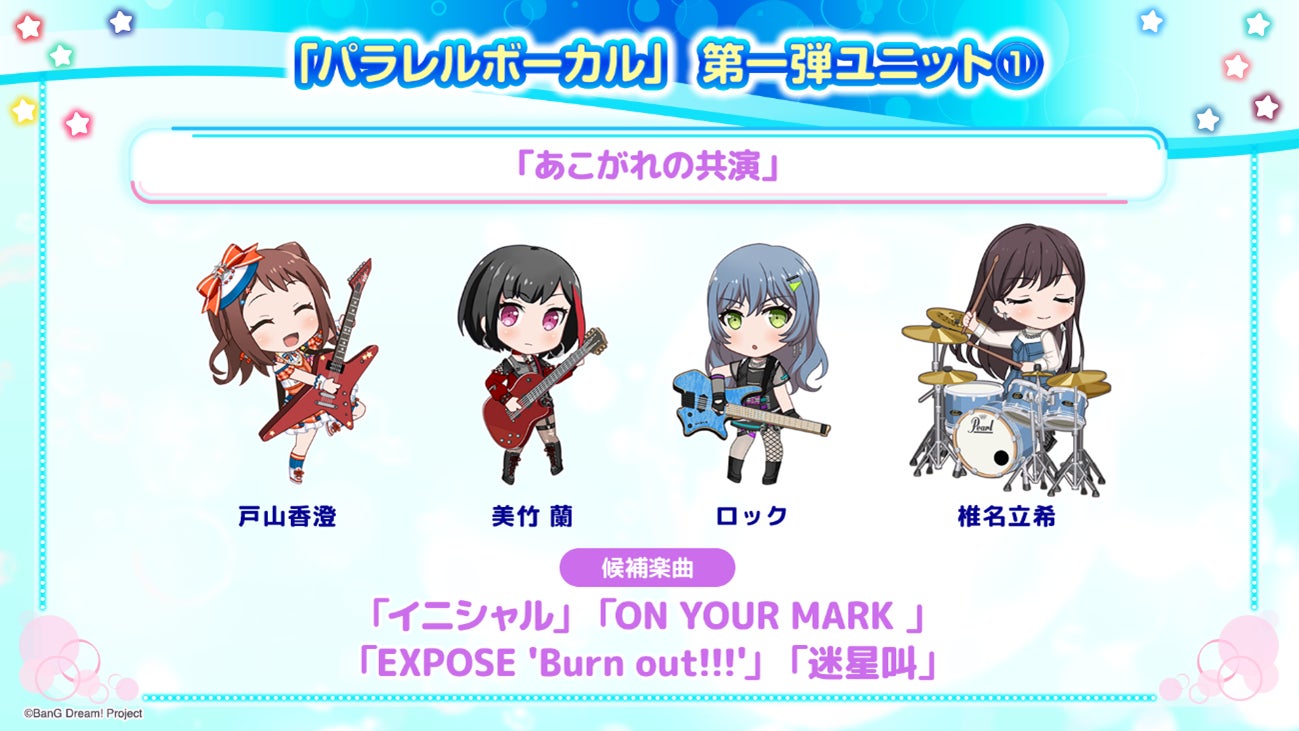 ガルパのオリジナル楽曲を、バンドの垣根を越えた組み合わせのユニットで歌唱する企画です。