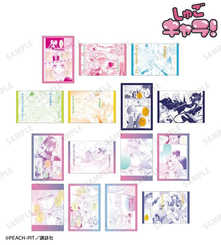 日奈森 あむ、アミュレットハート、アミュレットスペード、アミュレットクローバー、アミュレットダイヤ、月詠 イクト、辺里 唯世、藤咲 なでしこ、相馬 空海、結木 やや、真城 りま、三条 海里、藤咲 なぎひこ、ほしな 歌唄の原作コマイラストを缶バッジに仕上げました。