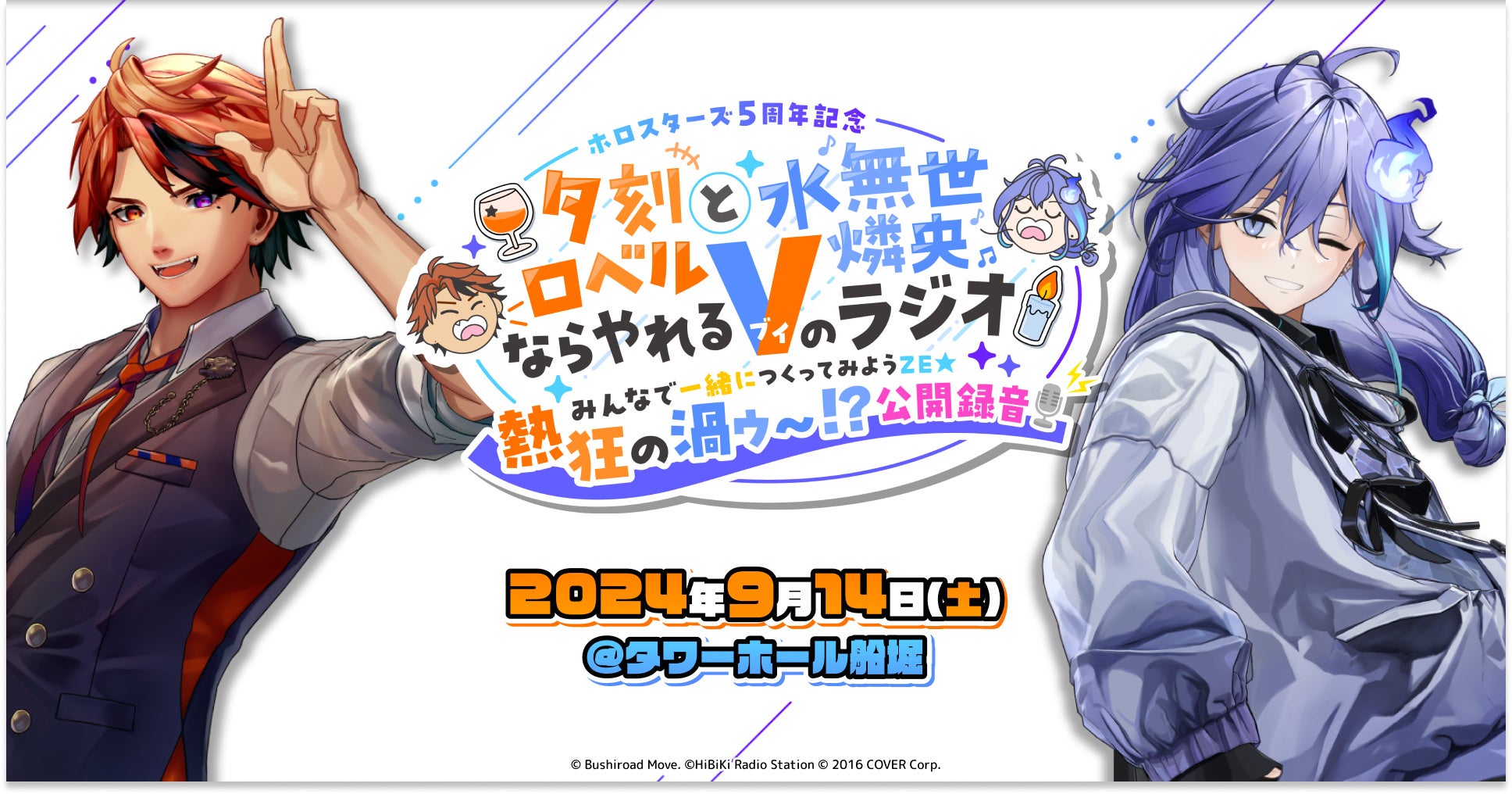 イベント名 | 【ホロスターズ5周年記念】夕刻ロベルと水無世燐央ならやれるVのラジオ みんなで一緒につくってみようZE★熱狂の渦ゥ〜!?公開録音 |