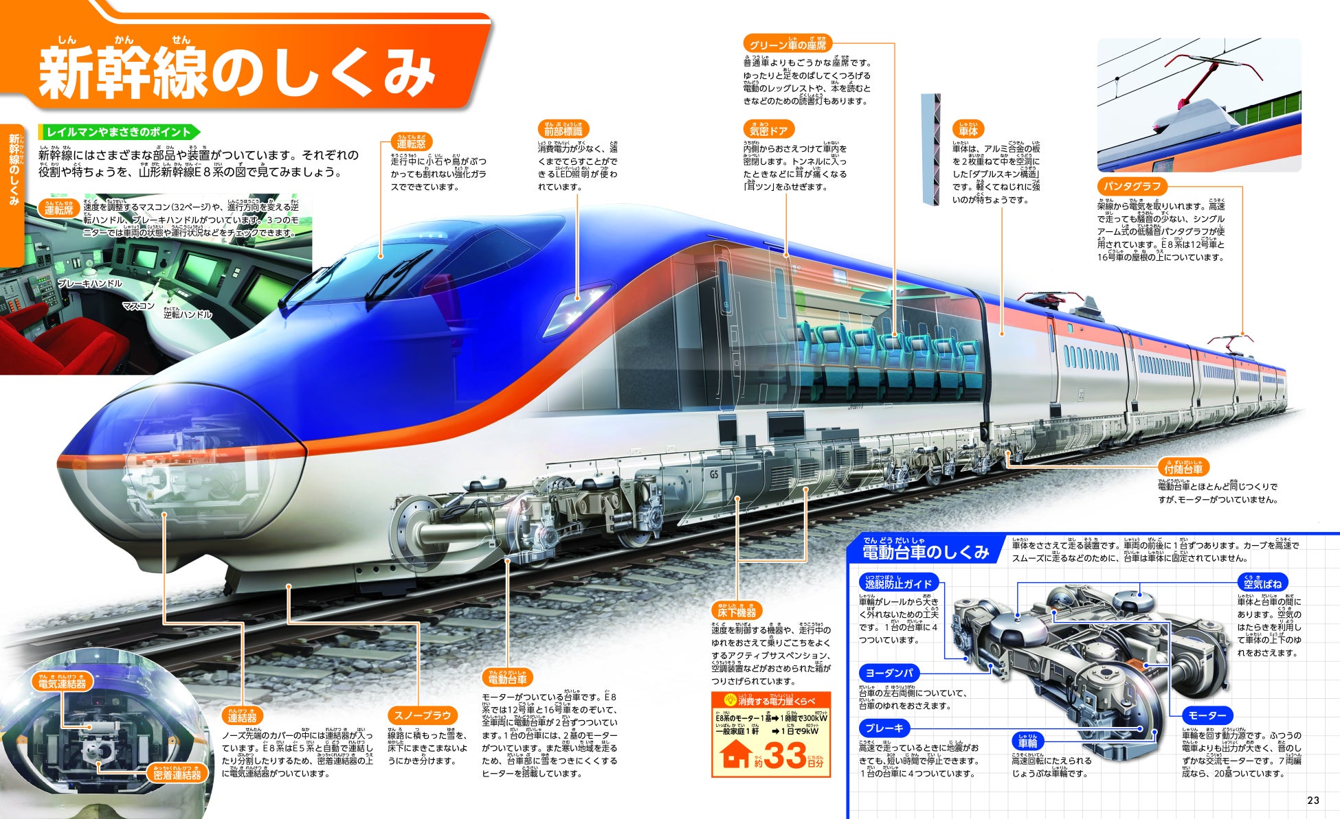 さらに、人気車両のスケルトンイラストの描き起こしも掲載。車両の内部構造やしくみが一目でわかる、鉄道好きにはたまらないコンテンツです。
