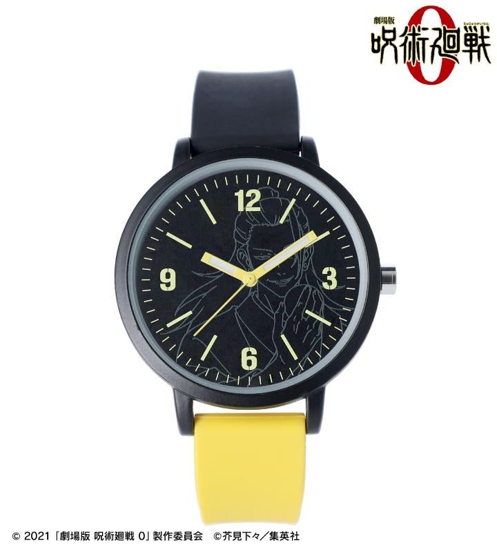文字盤には乙骨 憂太のイラストをプリントし、針やインデックスにも同様にキャラクターをイメージしたカラーを採用。