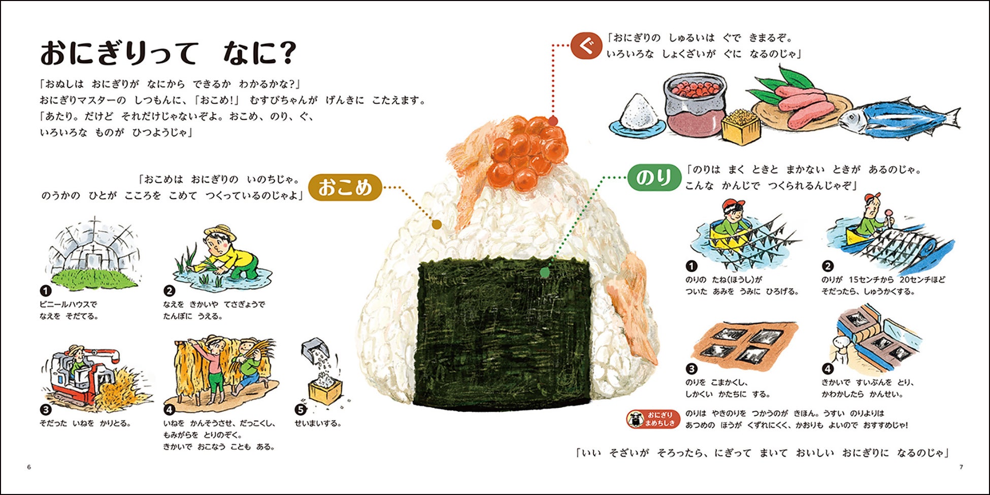 物語パートの合間に知識パートが入っているので、子どもでも楽しみながらおにぎりについて学ぶことができます。