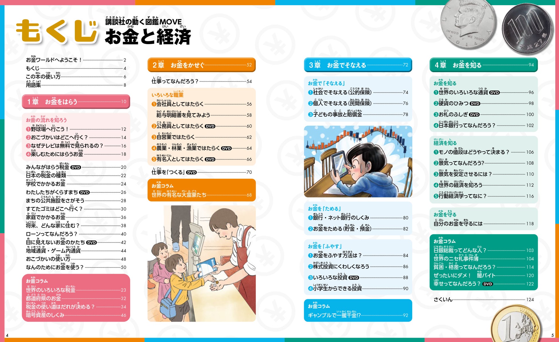 シリーズ累計600万部超の「講談社の動く図鑑MOVE」シリーズから、お金と経済をテーマにしたDVD付きお金図鑑『講談社の動く図鑑MOVE お金と経済』を2025年11月28日(火)に発売します。「世の中を生き抜く力をそだてる」をコンセプトに、子どもから大人まで、現代社会をサバイブするための知恵や知識を豊富に掲載した、実用的な図鑑です。