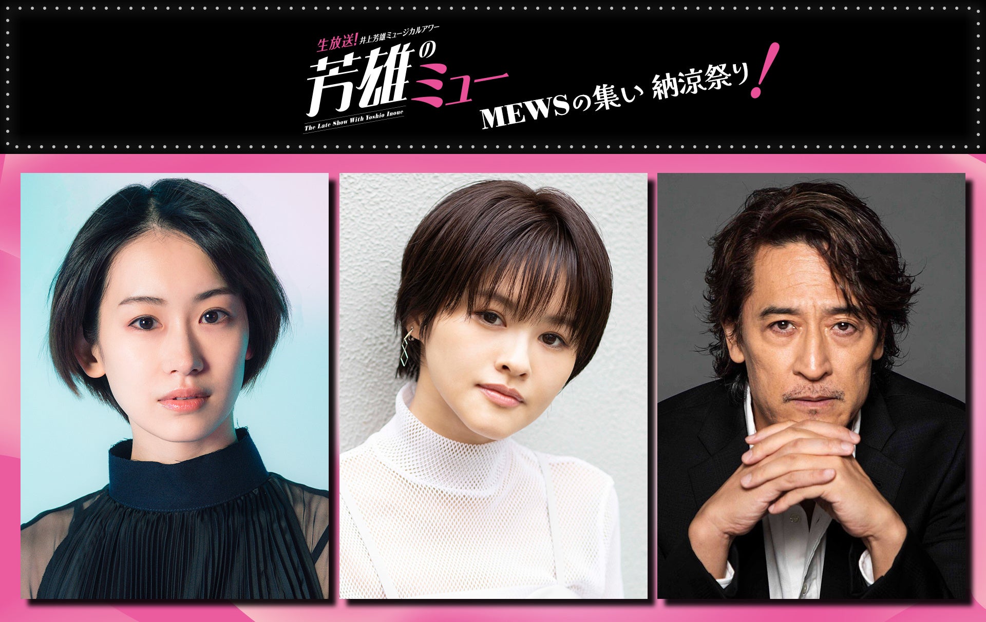 まだまだ続く暑い夏をしのいで、楽しく和気藹々と涼をとろうという、昨年8月にお届けし大好評をいただいた「夏祭り!MEWS の集い」のような内容を企画。こちらでゲスト出演者がすべて出揃い、今年も華やかに楽しく盛り上がるであろう、「芳雄のミュー」ならではの“納涼祭り”にご期待いただきたい。
