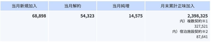 月次の加入件数は、毎月第2営業日に開示予定です。ただし、予期せぬ理由で公表日が急逮変更となる場合がございますので、予めご了承ください。