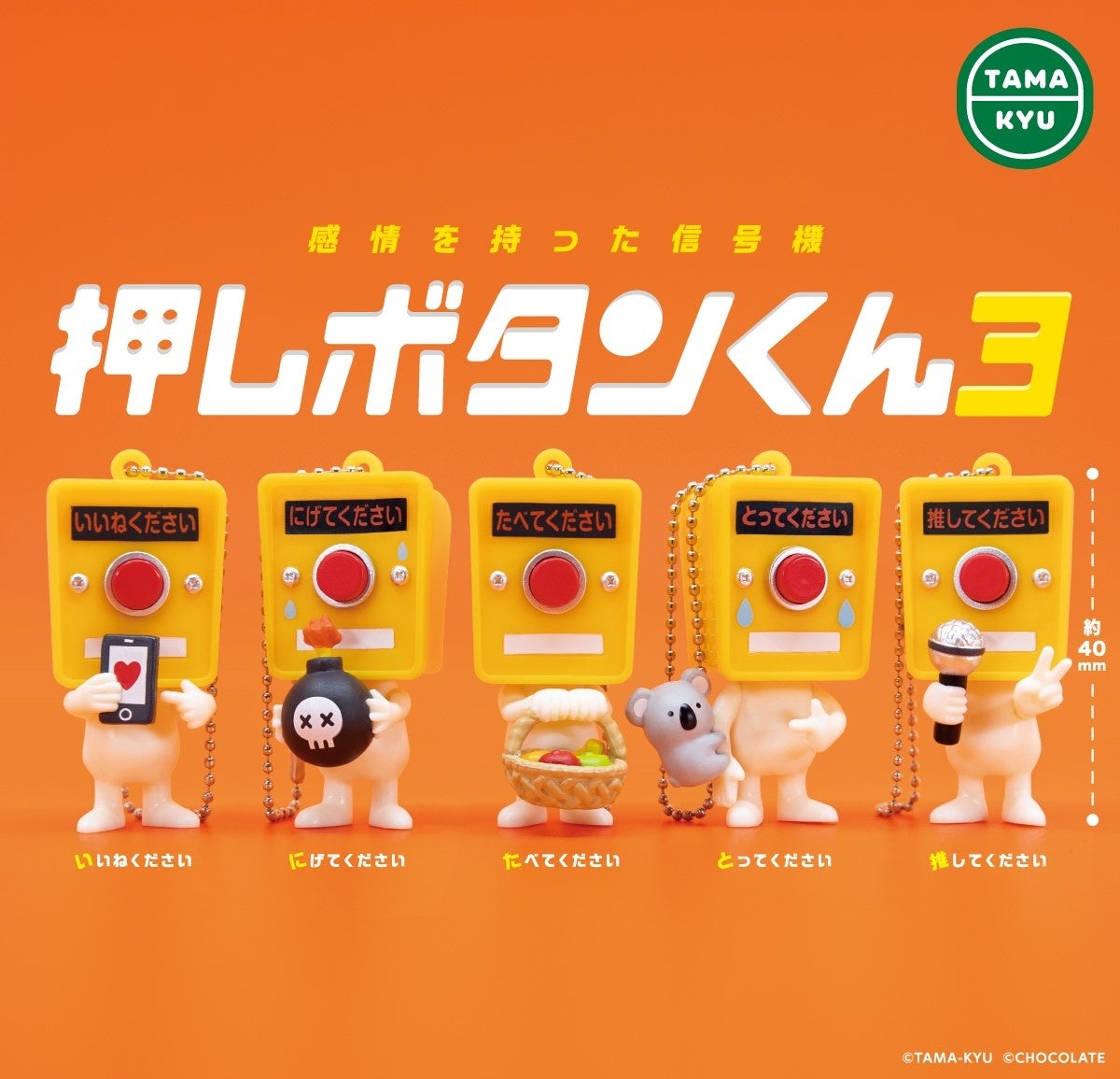 「押しボタンくん3」は7月30日(火)より全国のカプセルトイコーナーにて順次販売開始です。