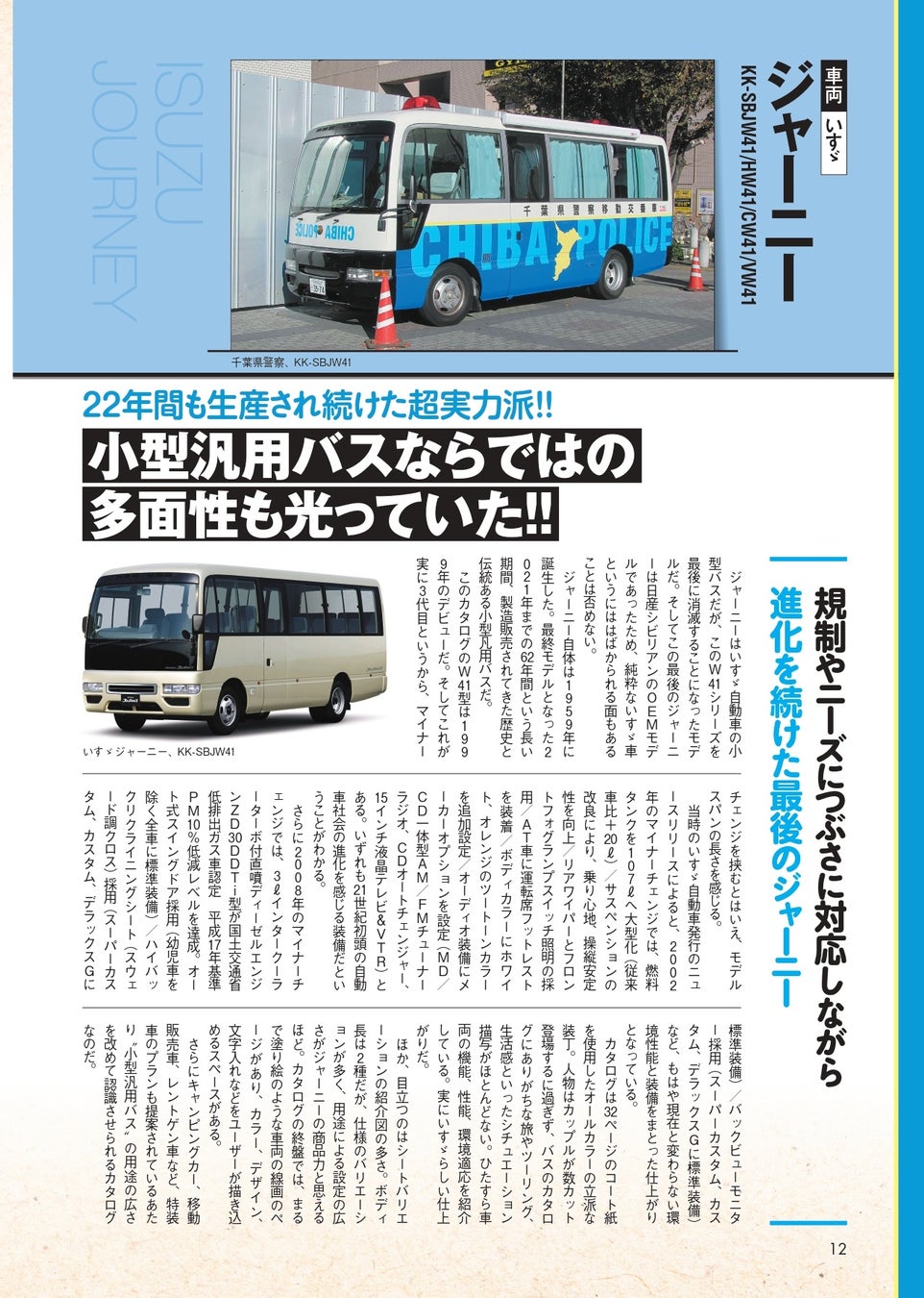 巻頭のボルボ アステローペに続いて登場するのは、いすゞジャーニー。こちらも本書で初めて登場するモデルで、日産シビリアンのOEMモデルだった。