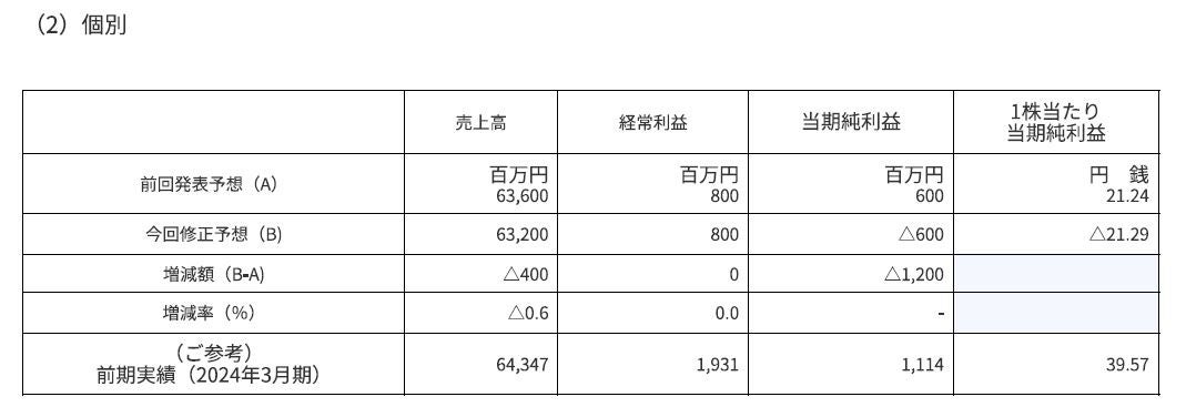 特別損失の計上、2025年3月期第2四半期(中間期)および2025年3月期通期業績予想の修正に関するお知らせ