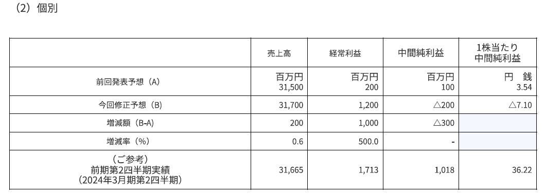 2.2025年3月期第2四半期(中間期)の業績予想数値の修正について(2024年4月1日~2024年9月30日)
