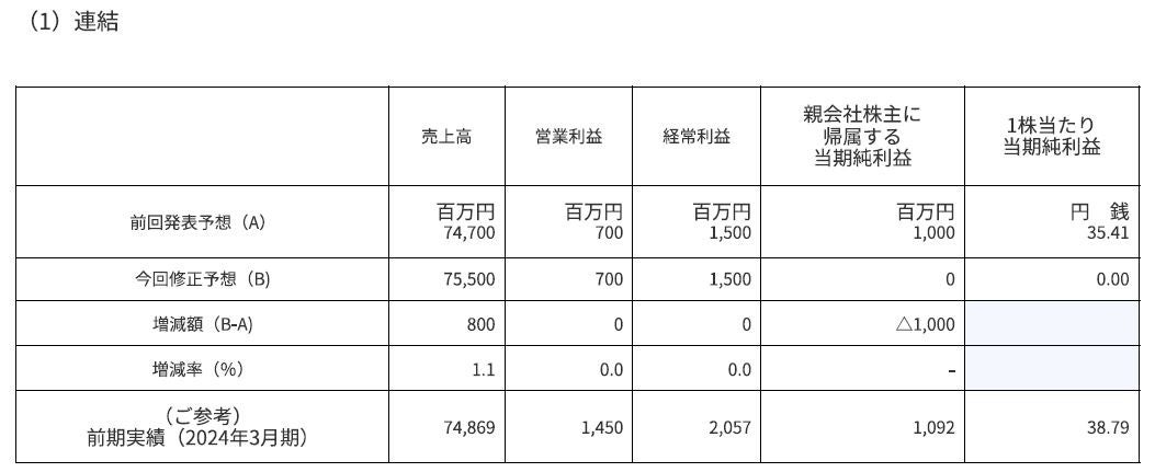 (1)2025年3月期第2四半期(中間期)の業績予想値の修正