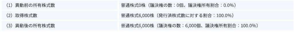 (注)取得価額は、相手先との守秘義務により、開示は差し控えさせていただきますが、公平性・妥当性を確保するため、外部機関が実施した財務・税務・法務・労務デューディリジェンスの結果を勘案し、決定しております。