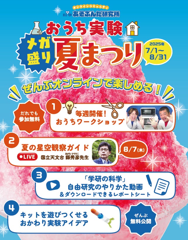 学研の科学「おうち実験メガ盛り夏まつり」イベントサイトにて8月7日(木)19:30~開催 【主催:『学研の科学 あそぶんだ研究所』】