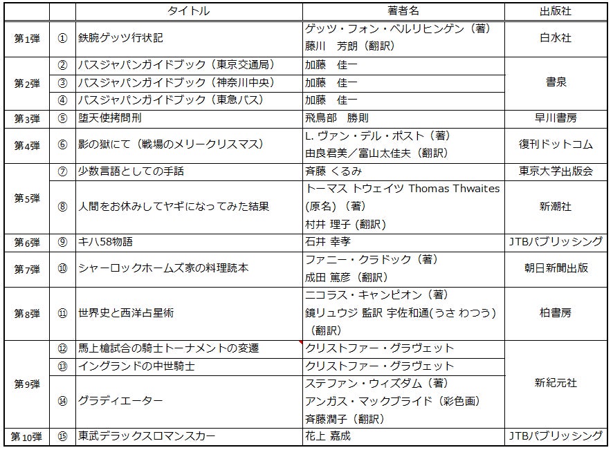 「中世への旅」シリーズの大ヒットから始まった復刊企画「書泉と、10冊」「芳林堂書店と、10冊」。この企画は、過去に出版された書籍で既に在庫がなく手に入りにくい名作を、株式会社書泉と出版社のみなさま、著者のみなさまに協力いただき重版・復刊してお届けして参りました。