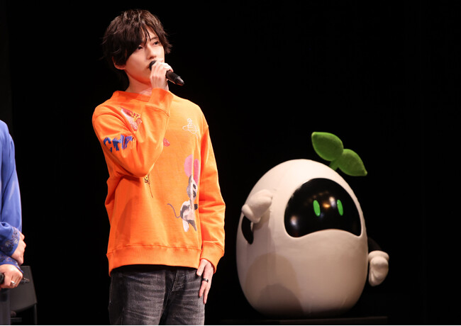 さらに、Anthos*にフォーカスしたファンブック「『華Doll*』The Anthos* Anatomy」の制作決定も明かされ、会場は大きな拍手に包まれました。1部の告知中には、壇上のマスコットアンドロイド・PLANTs(プランツ)になりきった伊東さんや増田さん、濱野さんが声色を変えてアナウンスし、声に合わせてPLANTsの腕を動かす場面も。遊び心あふれる演出に、客席は和やかな雰囲気に包まれました。