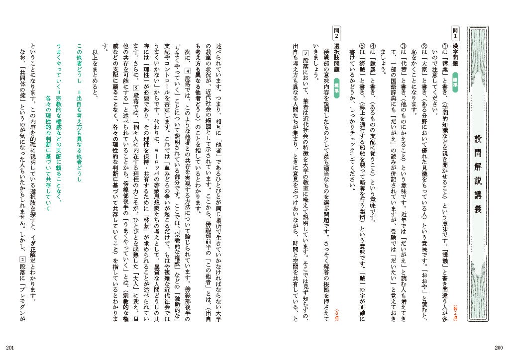 本書の解説では、各講にまず本文をしっかりと読み取るための「本文解説講義」が、続いて設問を解くための手法を解説した「設問解説講義」が掲載されています。