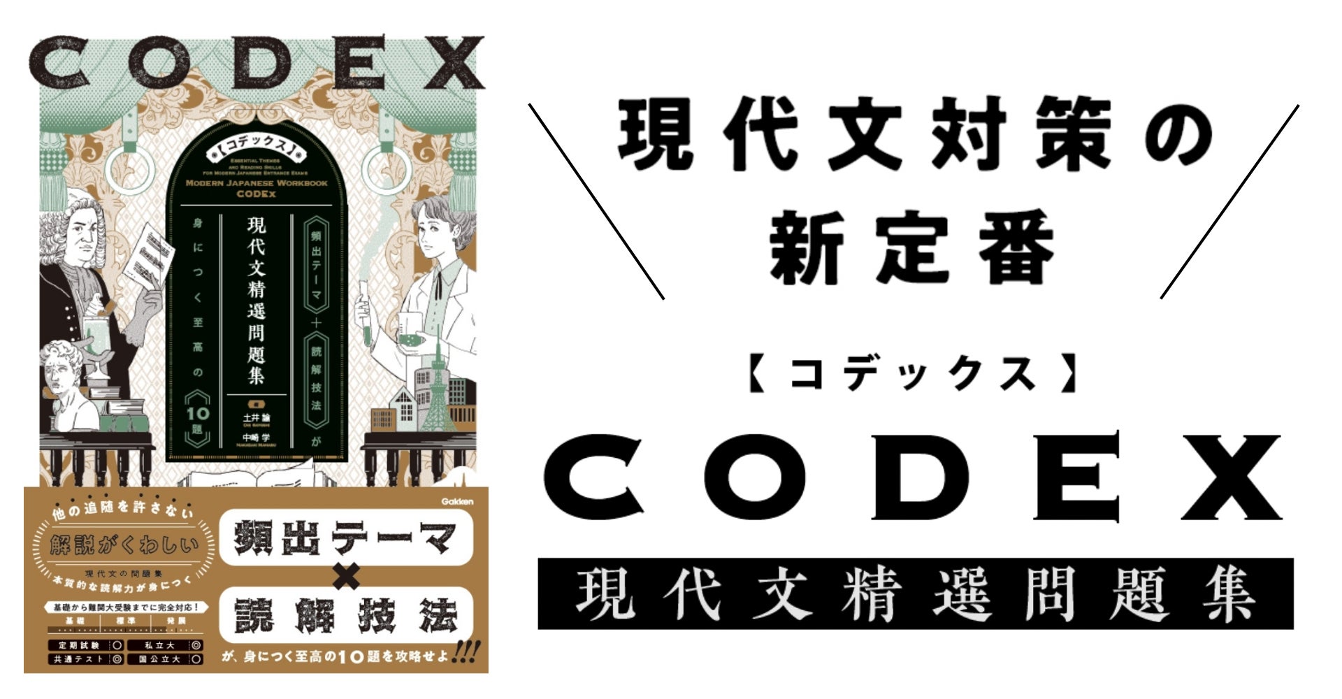 タイトルに掲げた「CODEX」という言葉は、ラテン語に由来し、「古代の写本」「法典」という意味があります。また現代では「規格」「標準」といった意味でも用いられています。この一冊が、現代文読解の智慧が凝縮された「法典」として、さらには現代文攻略の正しい「規格」となって、あなたの学びを確かな道筋へと導く大切な伴走者になることを願っています。