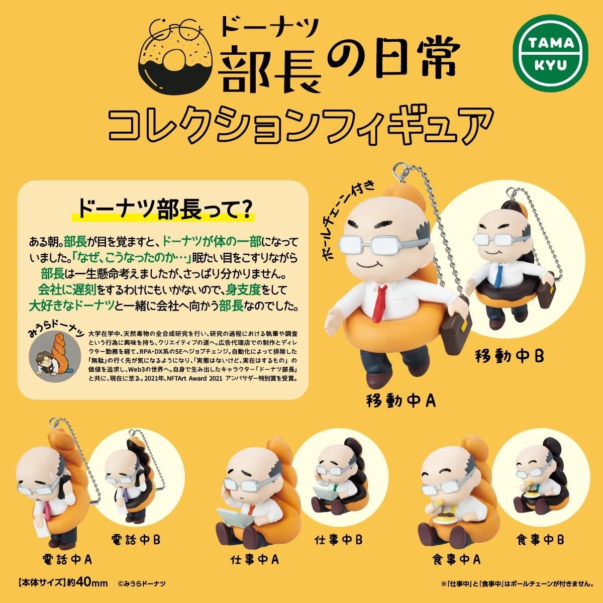 【新商品】NFT発のキャラクターがフィギュア化!「ドーナツ部長の日常 コレクションフィギュア」が本日より全国のカプセルトイコーナーにて順次販売開始。