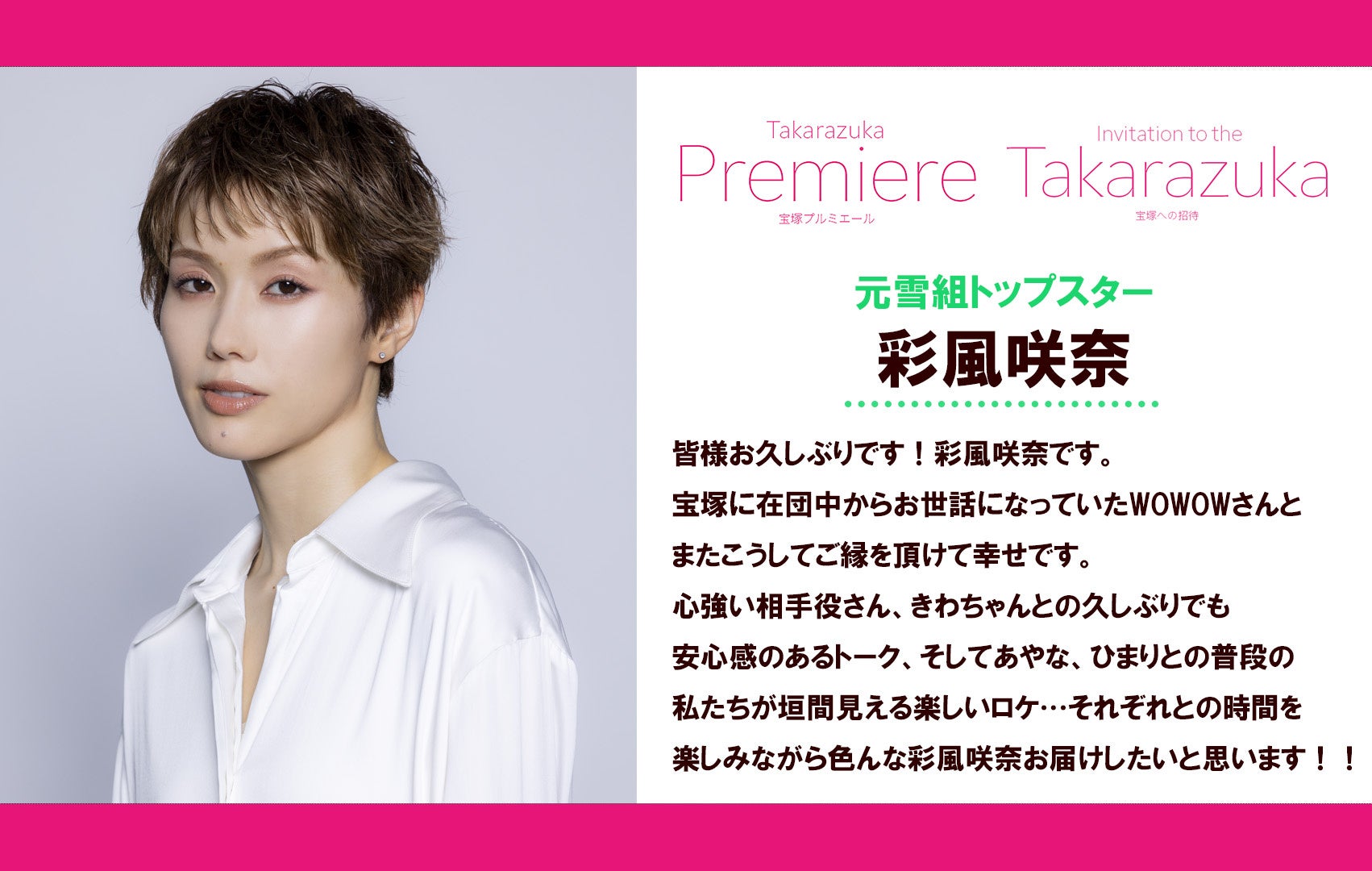 WOWOWが、宝塚歌劇の各組選りすぐりの公演や大劇場公演をお届けする「宝塚への招待」と、宝塚歌劇団の最新情報を毎月お届けするオリジナル番組「宝塚プルミエール」。12/28(土)の放送は、元雪組トップスター・彩風咲奈のスペシャル番組をお届けする。