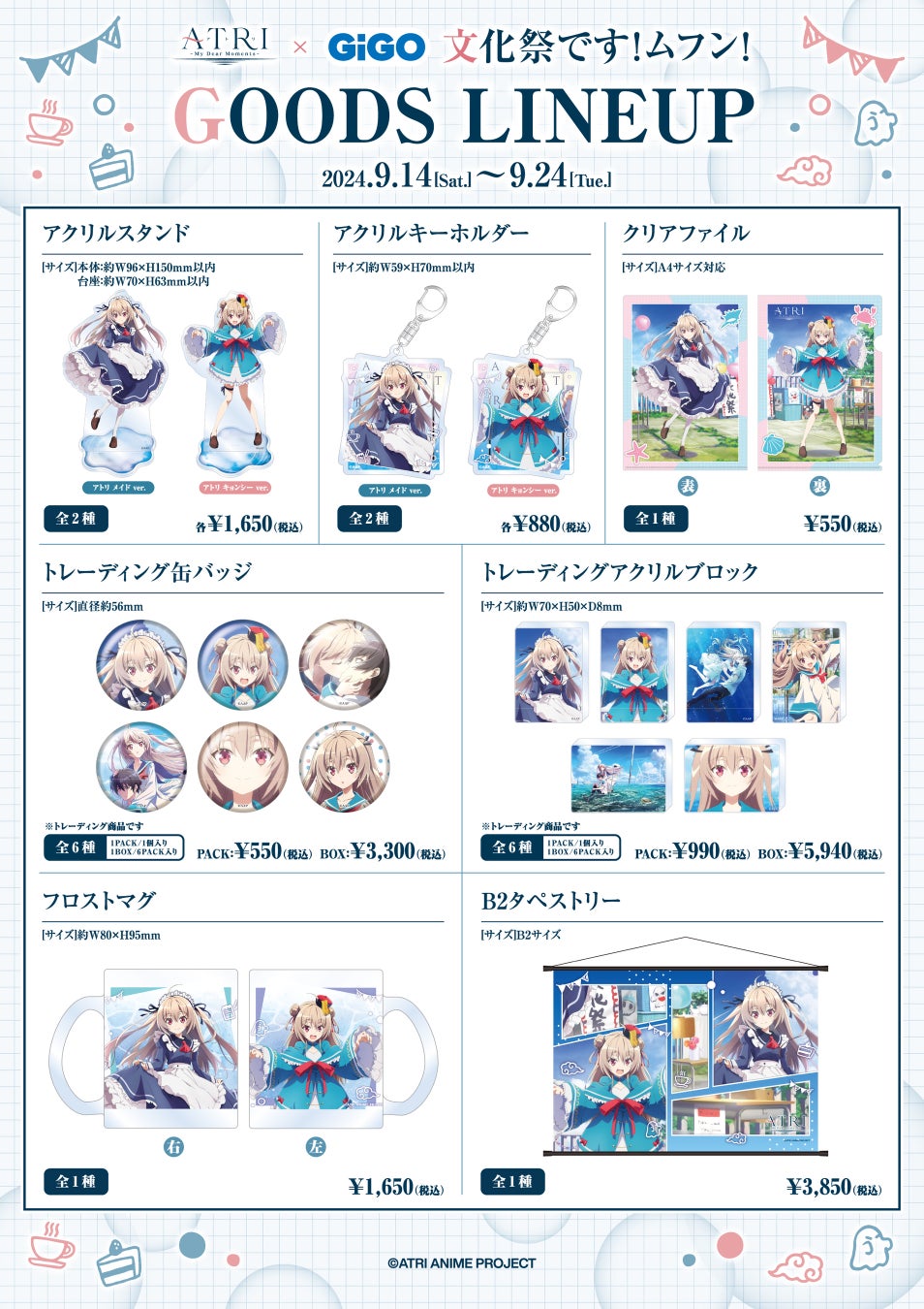 2024年9月14日(土)より、GiGO秋葉原5号館にて『アニメ「ATRI -My Dear Moments-」 文化祭です!ムフン!』を開催!