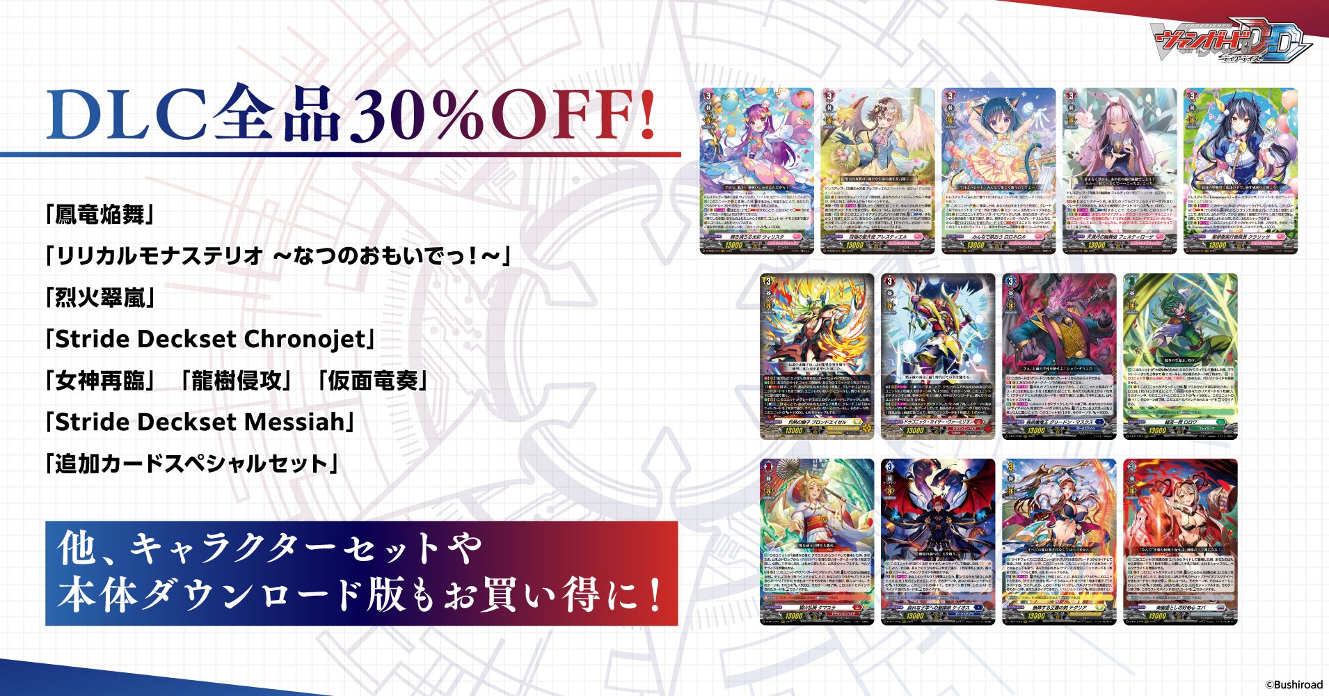 『カードファイト!! ヴァンガード ディアデイズ2』の発表を記念して、「ディアデイズ」本体と各追加DLCを全品30%OFFで販売!