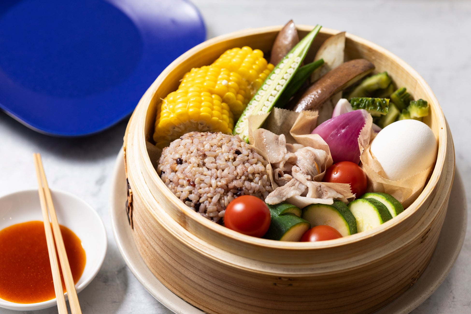 せいろは同時調理が大得意。直径21cmのせいろが2段あれば、2人分の主菜1品と副菜2品、汁ものの一汁三菜献立が一気に作れます。1人分のお弁当なら、せいろ1段を使って10分でラクラク完成。遅く帰った日も、時間がない朝も、せいろはあなたの味方です!