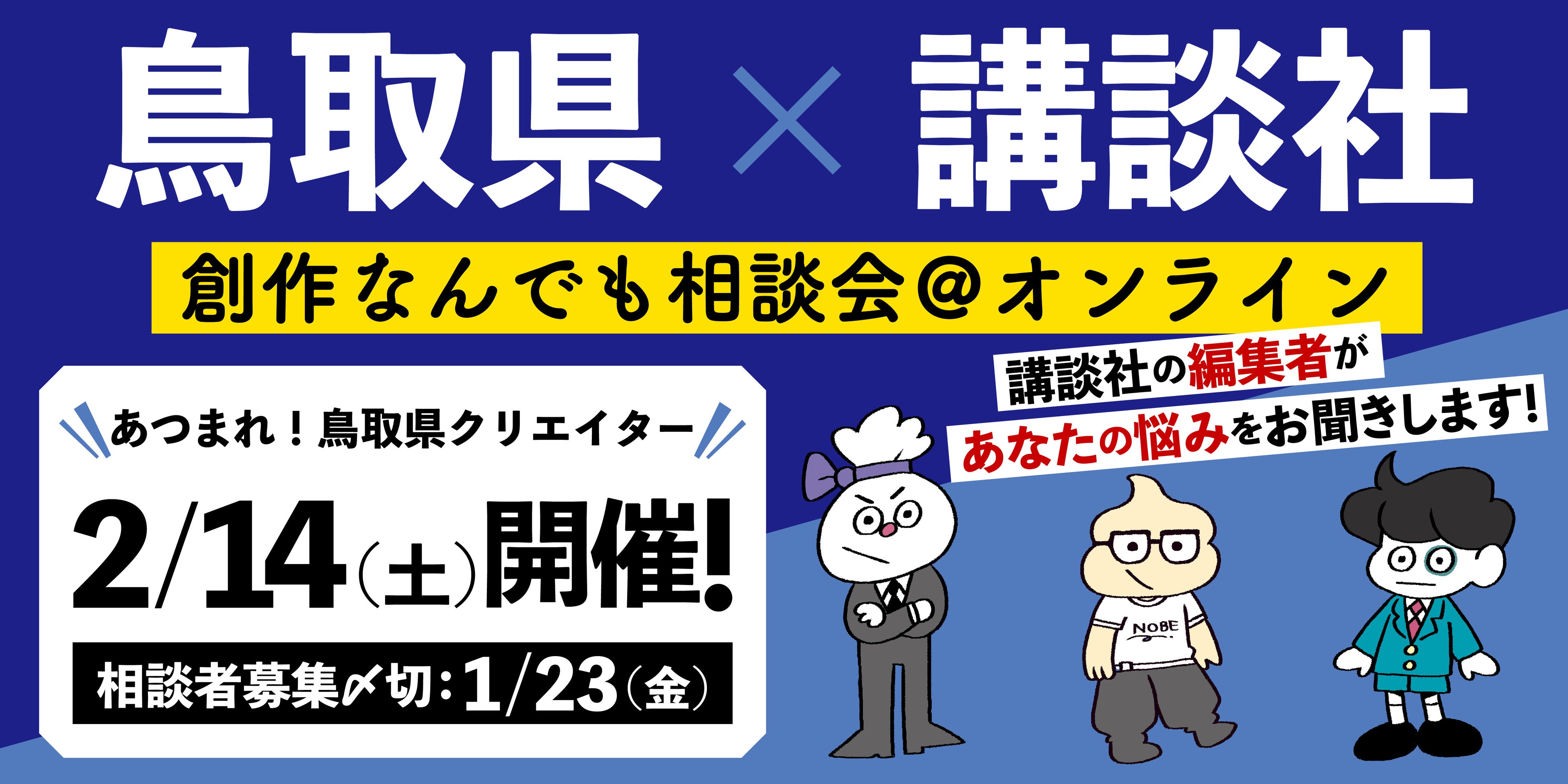 【鳥取県×講談社】「創作なんでも相談会@オンライン」開催!相談者募集中!