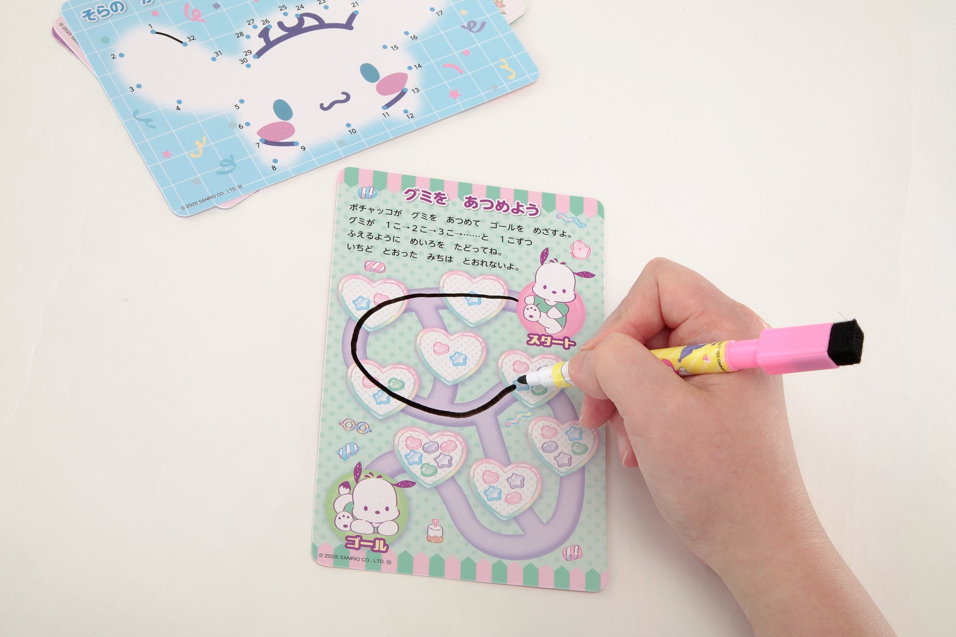 いつでもどこでも、書いて消して何度でもあそべる! おえかき、絵さがし、めいろなど、サンリオキャラクターズと120のあそびを楽しめる、カード・ペン・ケースがセットになったアクティビティボックスが登場!