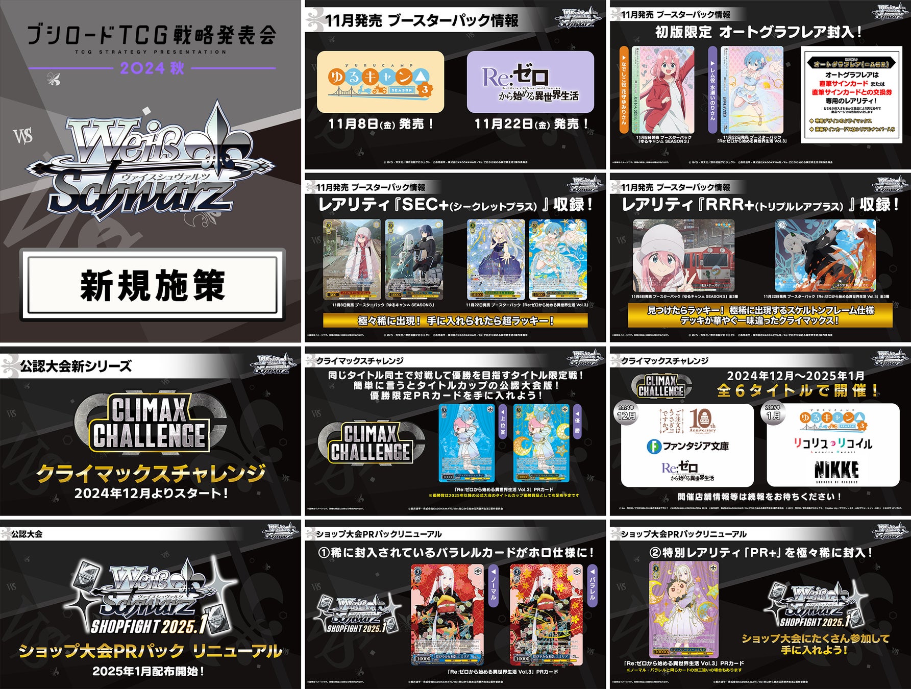 11月8日発売 ブースターパック『ゆるキャン△ SEASON3』や11月22日発売 ブースターパック「Re:ゼロから始める異世界生活」Vol.3より導入されるいくつかの施策について発表!