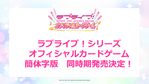 2024年10月下旬ごろにYouTubeラブライブ!シリーズ公式チャンネルにて、ラブライブ!シリーズ オフィシャルカードゲームの新情報生放送を行うことが決定致しました!」