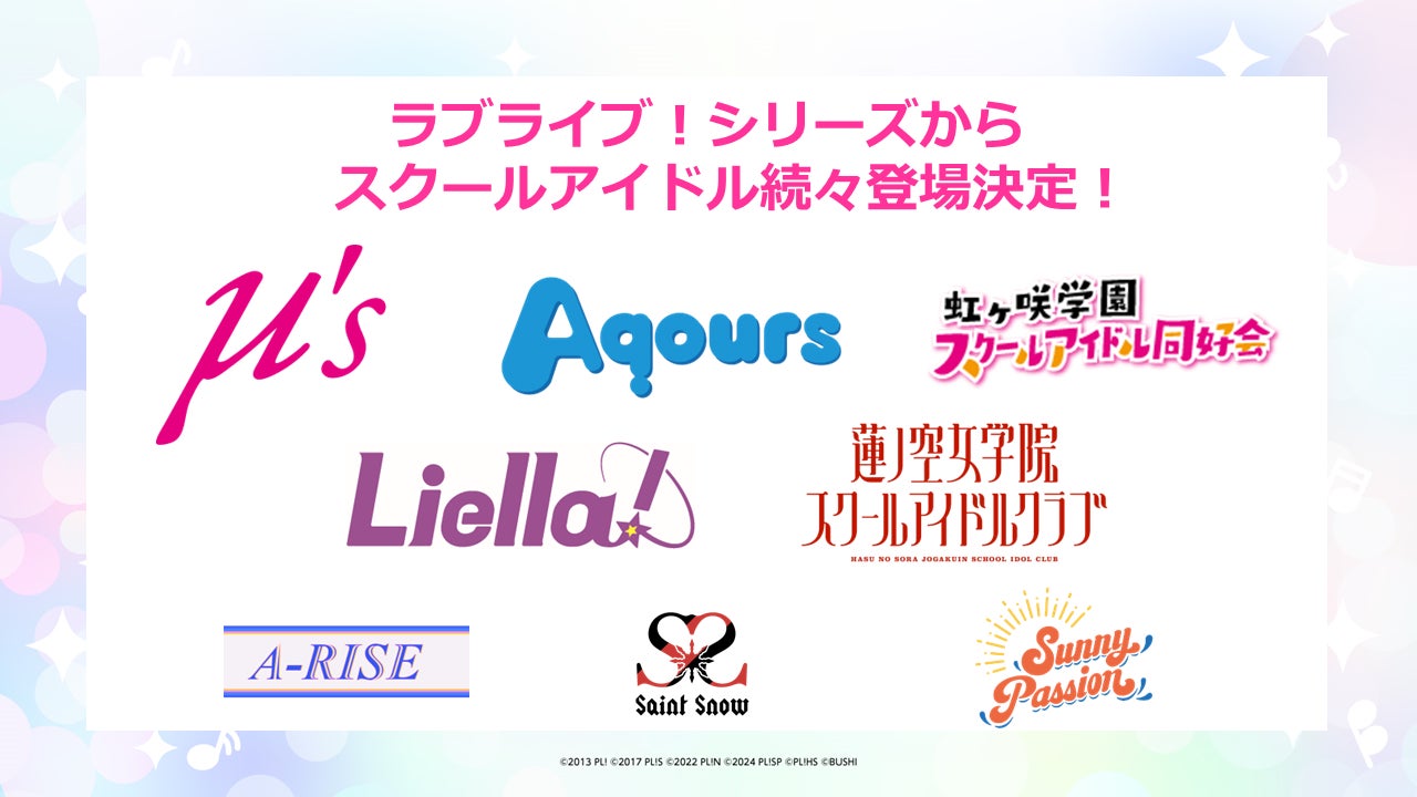 μ’s、Aqours、虹ヶ咲学園スクールアイドル同好会、Liella!、蓮ノ空女学院スクールアイドルクラブだけでなく、A-RISE、Saint Snow、SunnyPassionといったライバルユニットも登場!