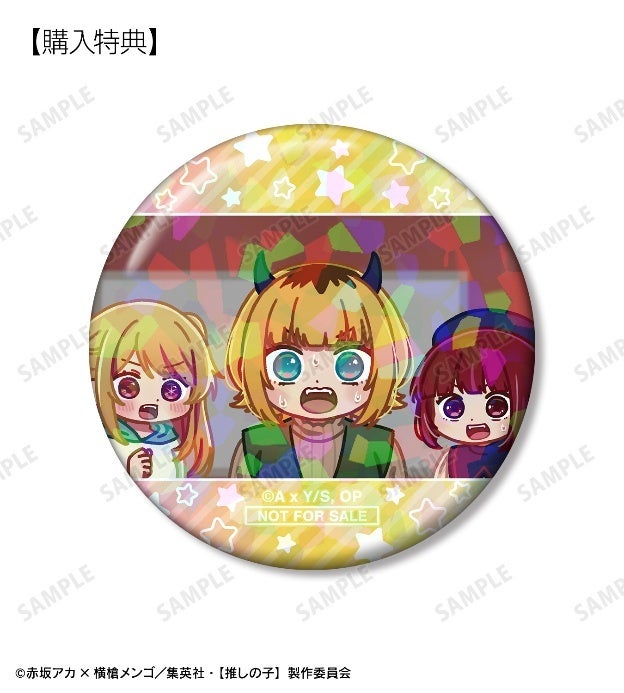 当商品を1BOX、または単品にて1BOX相当数ご注文ごとに、予約購入特典として「【推しの子】 ルビー&有馬かな&MEMちょ ゆるコマ ホログラム缶バッジ AMNIBUS限定特典」を付属いたします。