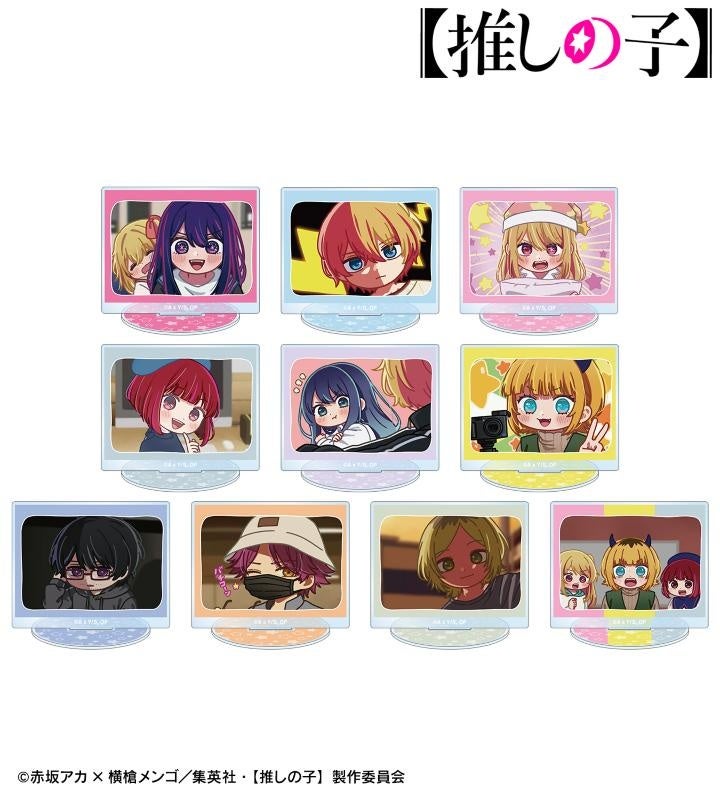 アイ、アクア、ルビー、有馬かな、黒川あかね、MEMちょ、姫川大輝、鳴嶋メルト、鴨志田朔夜の印象的なシーンのゆるコマイラストを、アクリルスタンドに仕上げました。