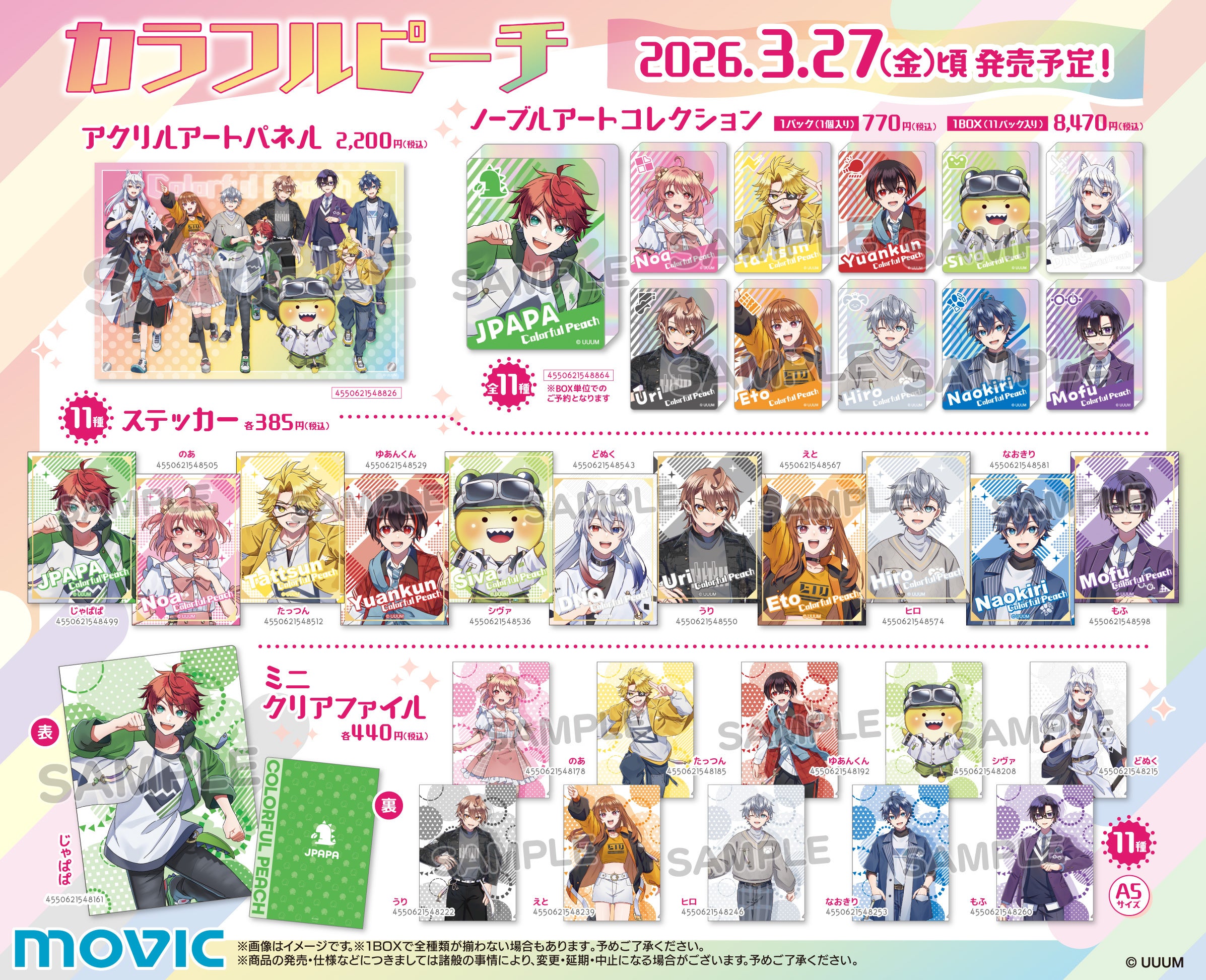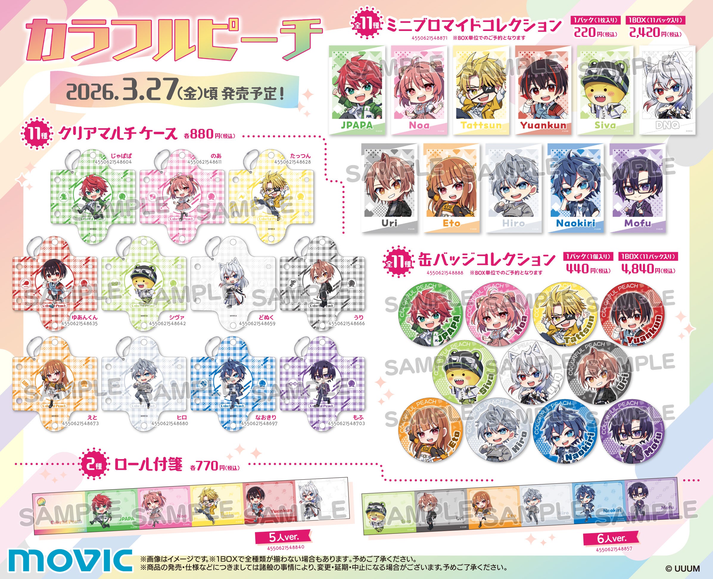 株式会社ムービックは大人気ゲーム実況グループ「カラフルピーチ」の新商品を、全国のアニメイト、アニメイト通販、ムービック通信販売等にて発売いたします。