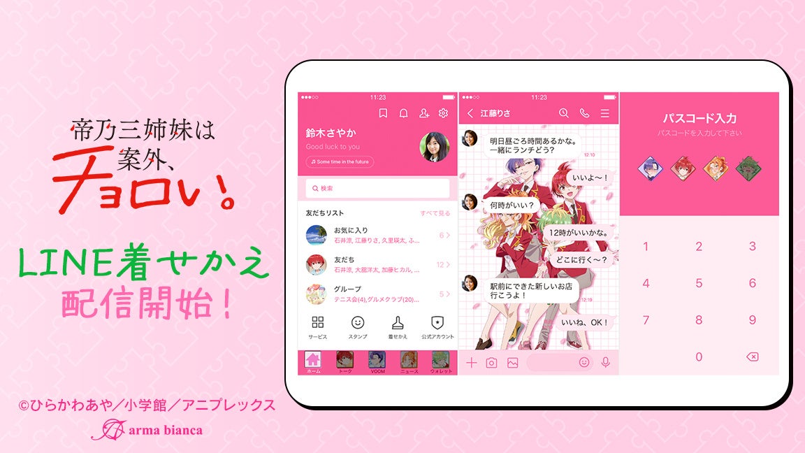 株式会社アルマビアンカはTVアニメ『帝乃三姉妹は案外、チョロい。』のLINEスタンプ・着せかえを配信いたします。