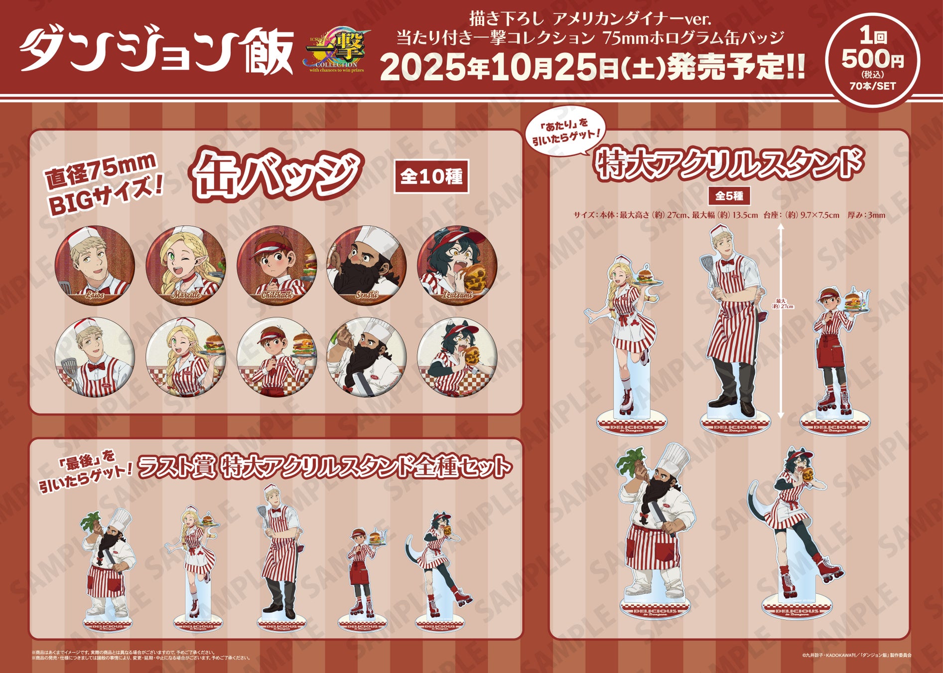 『TVアニメ「ダンジョン飯」』の当たり付き一撃コレクション 75mmホログラム缶バッジが2025年10月25日(土)より発売されます!