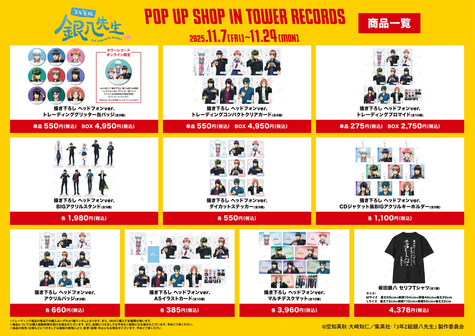【「TVアニメ『3年Z組銀八先生』POP UP SHOP in TOWER RECORDS」内へのご案内について】