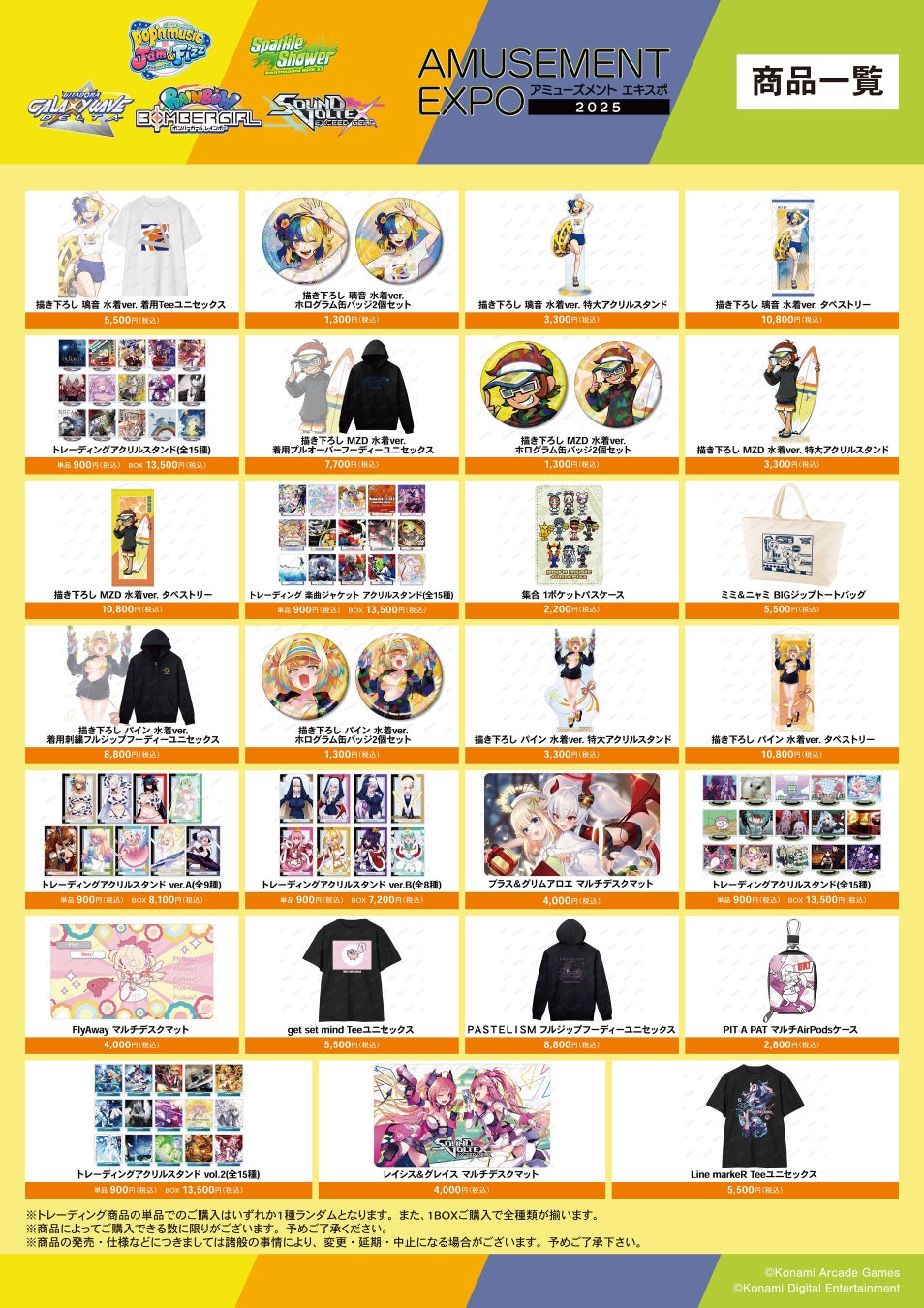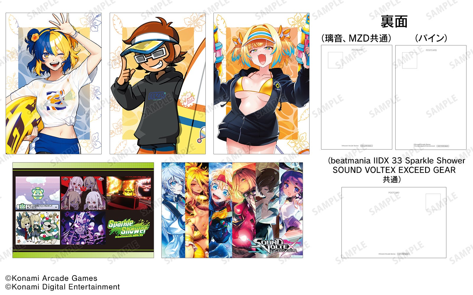 今回のイベントでは、『GITADORA GALAXY WAVE DELTA』、『pop'n music Jam&Fizz』、『ボンバーガール レインボー』の新規描き下ろしイラストを使用した商品や『beatmania IIDX 33 Sparkle Shower』、『SOUND VOLTEX EXCEED GEAR』の新規商品を多数先行販売する他、イベント購入特典の配布を予定しております。