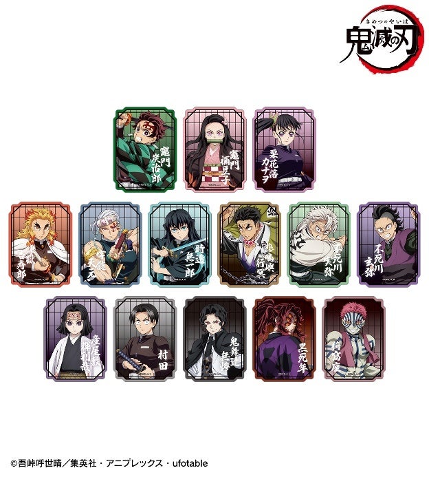 竈門炭治郎、竈門禰󠄀豆子、栗花落カナヲ、煉󠄁獄杏寿郎、宇髄天元、時透無一郎、悲鳴嶼行冥、不死川実弥、不死川玄弥、産屋敷輝利哉、村田、鬼舞辻󠄀無惨、黒死牟、猗窩座のイラストをイラストカードに仕上げました。