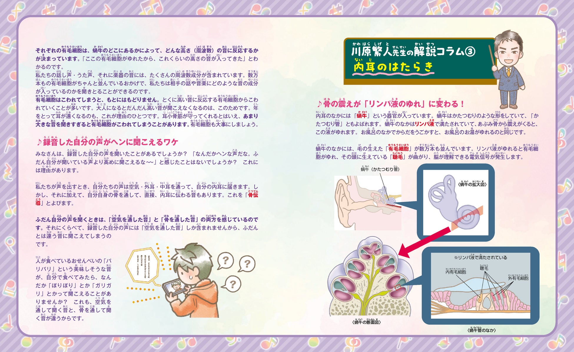 まんがによるストーリーのあいまには、音声学者の川原繁人先生による解説コラムも充実。子どもたちが確かな知識を身につけることができます。