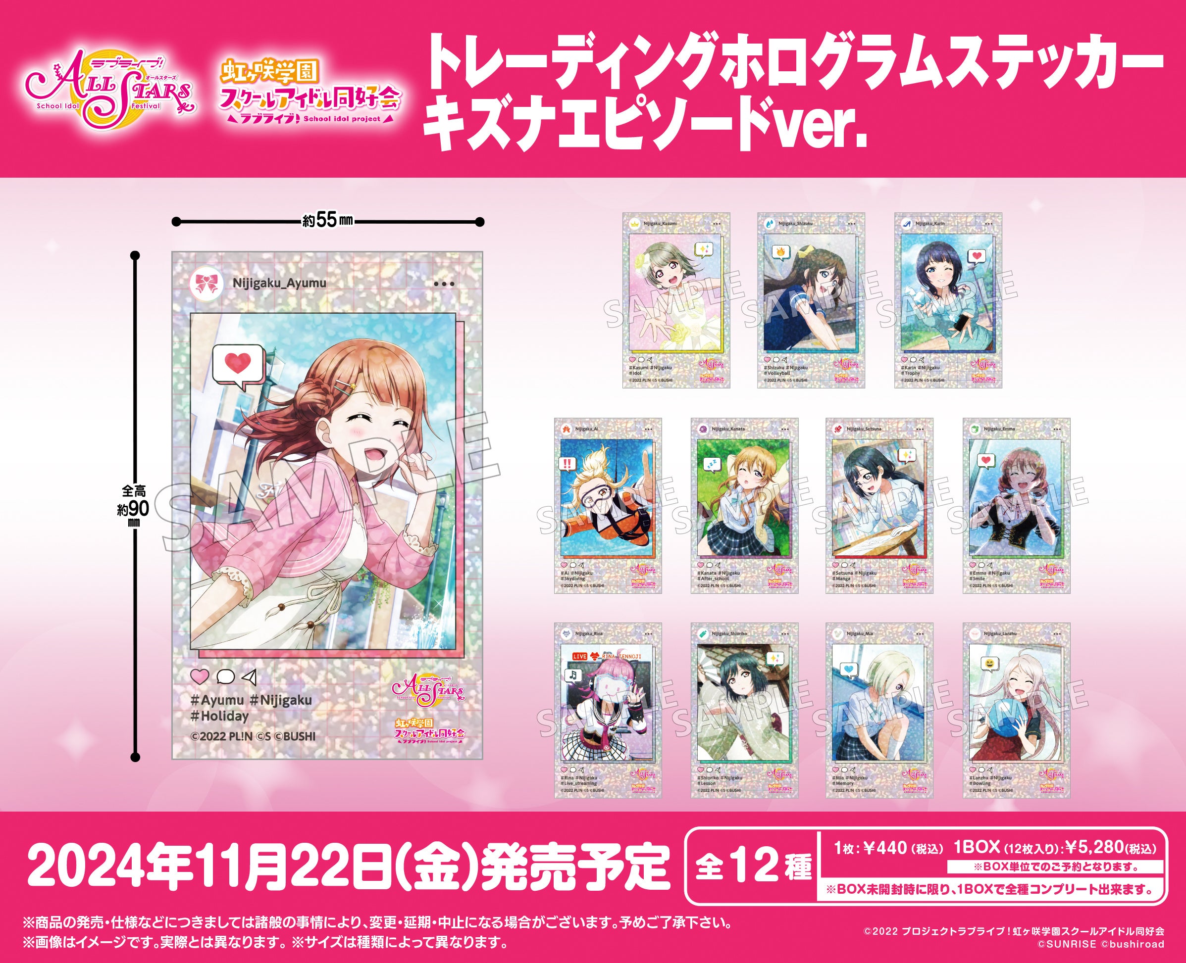ラブライブ!スクールアイドルフェスティバル ALL STARS のカードイラストを使用した新商品の販売のほか、購入特典としてホログラムクリアシート(全12種)もご用意!