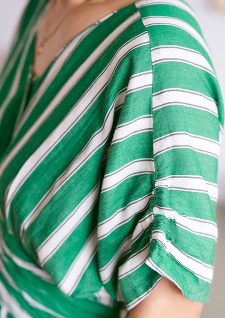 種類豊富なドレスが揃う「ヌキテパ」の中でも人気の高い「グリーンストライプ柄」に加え、別柄として「ブルーストライプ柄」もご用意。